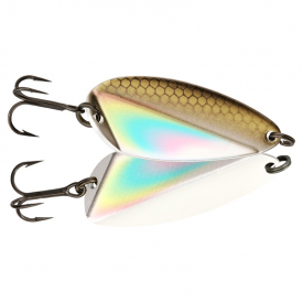 Origami Blade Flutter Spoon er lavet til isfiskeri og med sit specielle design stikker den ud til siderne og skaber en masse bevægelse og opmærksomhed under isen. Den kan selvfølgelig også fiskes som traditionel skelokke i åbent vand. Belagt med UV og Glow farver.