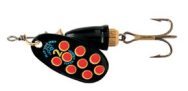 Vibrax Hot Pepper. Størrelse: 1-4, 4-10 g. En Vibrax med dobbelte signalprikker på skeen, malet i to lag, som tiltrækker fiskens opmærksomhed.