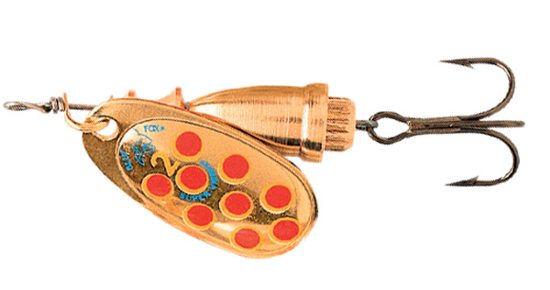 Vibrax Hot Pepper. Størrelse: 1-4, 4-10 g. En Vibrax med dobbelte signalprikker på skeen, malet i to lag, som tiltrækker fiskens opmærksomhed.