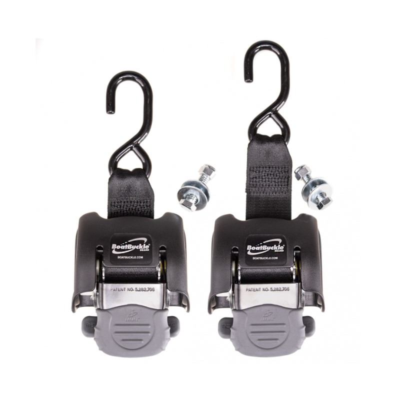BoatBuckles 2-pack är et självupprullande spännband för at spänna fast båten till trailern.