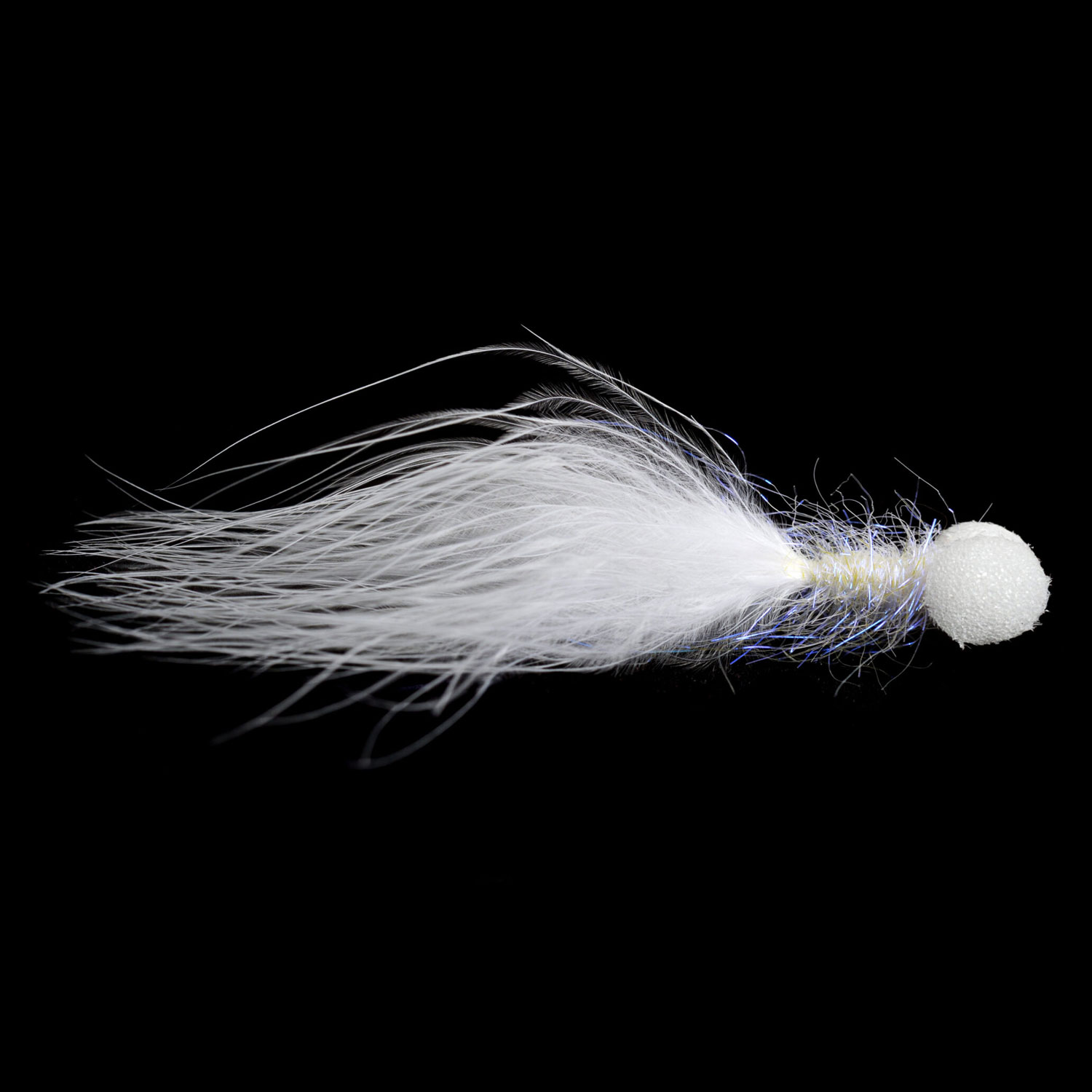 Booby White i størrelse 6 er en yderst effektiv flue til fiskeri i stillestående vand. Den hvide farve og de karakteristiske skumøjne gør den uimodståelig for rovfisk, der opholder sig tæt ved bunden. Ideel til brug med synkeline.