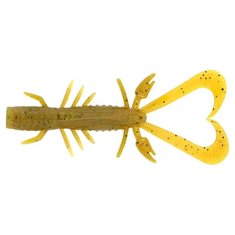 Kombinationen af fremad & bagudvendte ben giver den perfekte ‘skælvende’ action, mens du synker på lette jigheads, hvor kløerne og vingerne også giver det subtile spark til at trække bid. De to vigtigste krølle haleben på bagsiden af kroppen er designet til at fungere, når agnen hoppes ned fra bunden, som et signal til nærliggende rovdyr, der er noget at spise i nærheden.