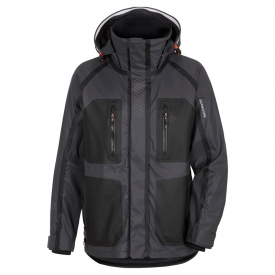 Element er fuldt vand- og vindtæt i stretch Galon® med tapede sømme. Perfekt til udendørs aktiviteter, som at have på eller ved havet, når du fisker eller sejler. Foret med mesh for luftighed med ventilation under bærestykket bagpå. Element har en regular fit med høj neoprenkrave, og jakken lukkes med en tovejs lynlås. Hætten kan rulles ind i kraven, er justerbar i dybden og bredden og har et gennemsigtigt visir. Buede raglanærmer med velcro-justering ved håndled og neopren indvendige manchetter. Justerbar kant. Armgab er forstærket med Cordura. Jakken har to brystlommer og sidelommer med vandafvisende lynlåse og to inderlommer. Jakken er udstyret med reflekser.