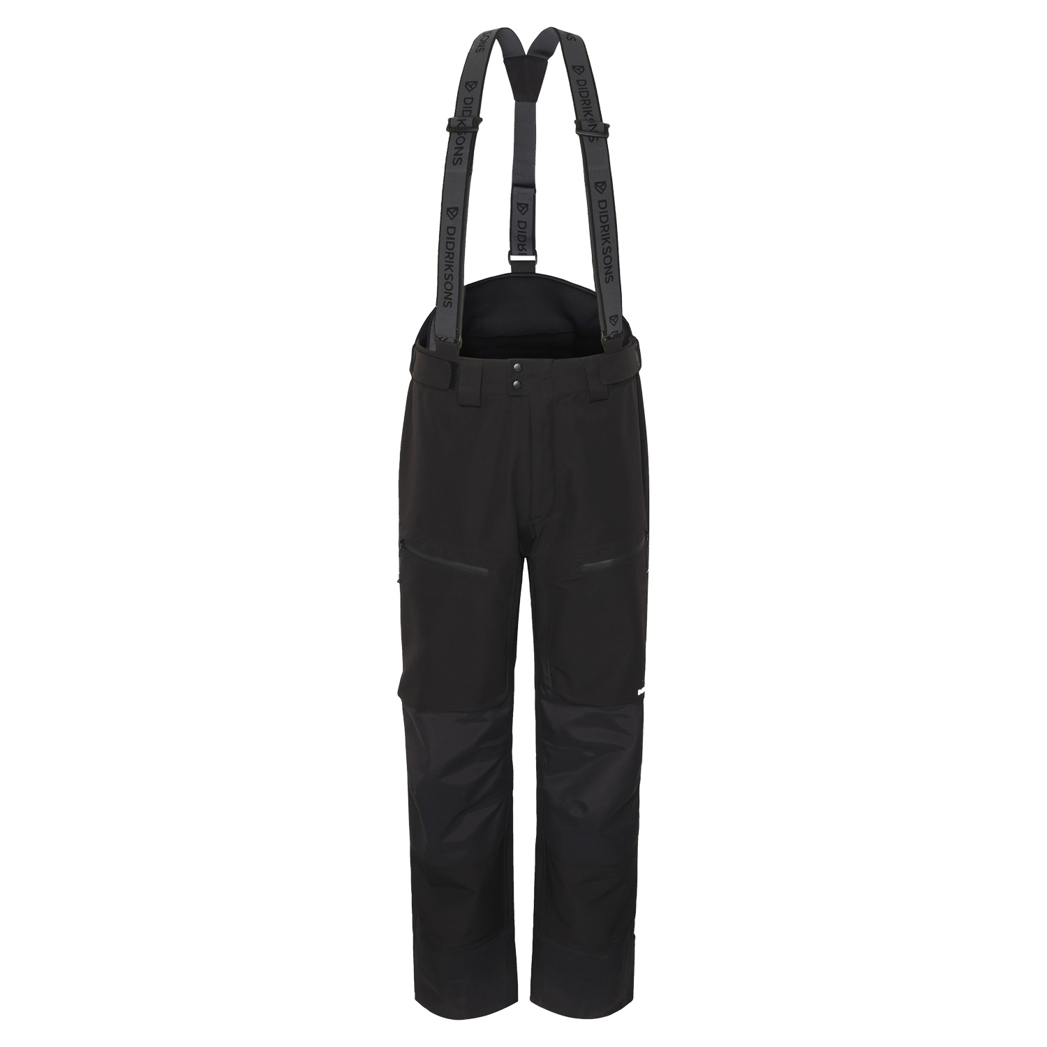 Didriksons Fractus USX Pants 3 giver fremragende beskyttelse mod regn og sne. Med en vandtæthed på 10.000 mm og en åndbarhed på 5000 g/m²/24h holder de dig tør og komfortabel hele dagen. Forstærkede knæ, sæde og benafslutninger øger slidstyrken, mens de integrerede snefang forhindrer fugt og sne i at trænge ind. Taljen kan justeres med velcro, og selerne kan justeres eller fjernes for en fleksibel pasform.