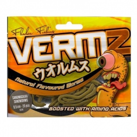 Fladen's Vermz er efterligninger af naturlige orme. De ser ud og dufter/smager ligesom naturlige orme, og er boostet med naturlige aminosyrer. Jordormene er den perfekte lokkemad for de fleste arter. Blodorme, altså larverne fra ikke-bidende myg, er også perfekte til de fleste arter og klarer sig særligt godt, for eksempel til vinterfiskeri efter aborre og vildtfisk. Fladen’s Vermz Sandworm er en perfekt efterligning af en sandorm eller lugworm fra familien, Polychaete. Udseendet og lugten/smager som en rigtig sandorm. Perfekt til bundfiskeri efter de fleste fiskearter og monteret på et jighoved eller jig.