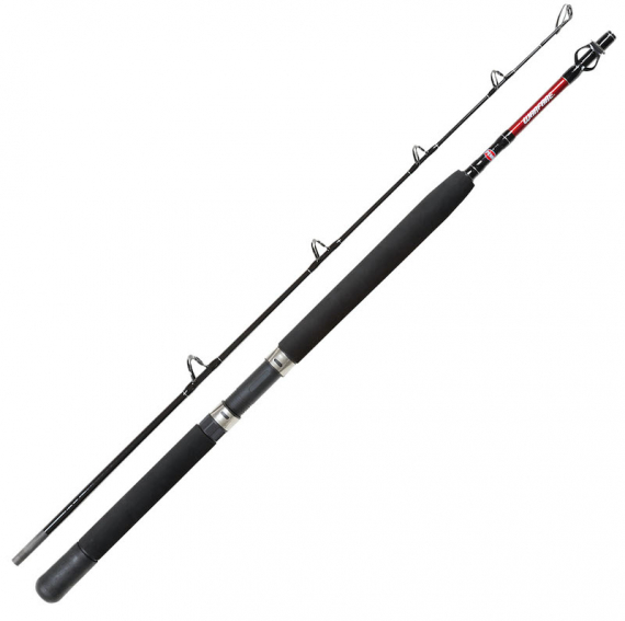 En stærk og pålidelig kombination til dybhavsfiskeri fra båd. Kompositstangen er rørformet i konstruktion og forstærket med speciel lak. Grafitmultiplikatorhjulet er komplet med en automatisk kobling, line-out-alarm, overdimensioneret håndtag, jævn vind og forspolet med fluorescerende ekstra stærk 0,60 mm line.