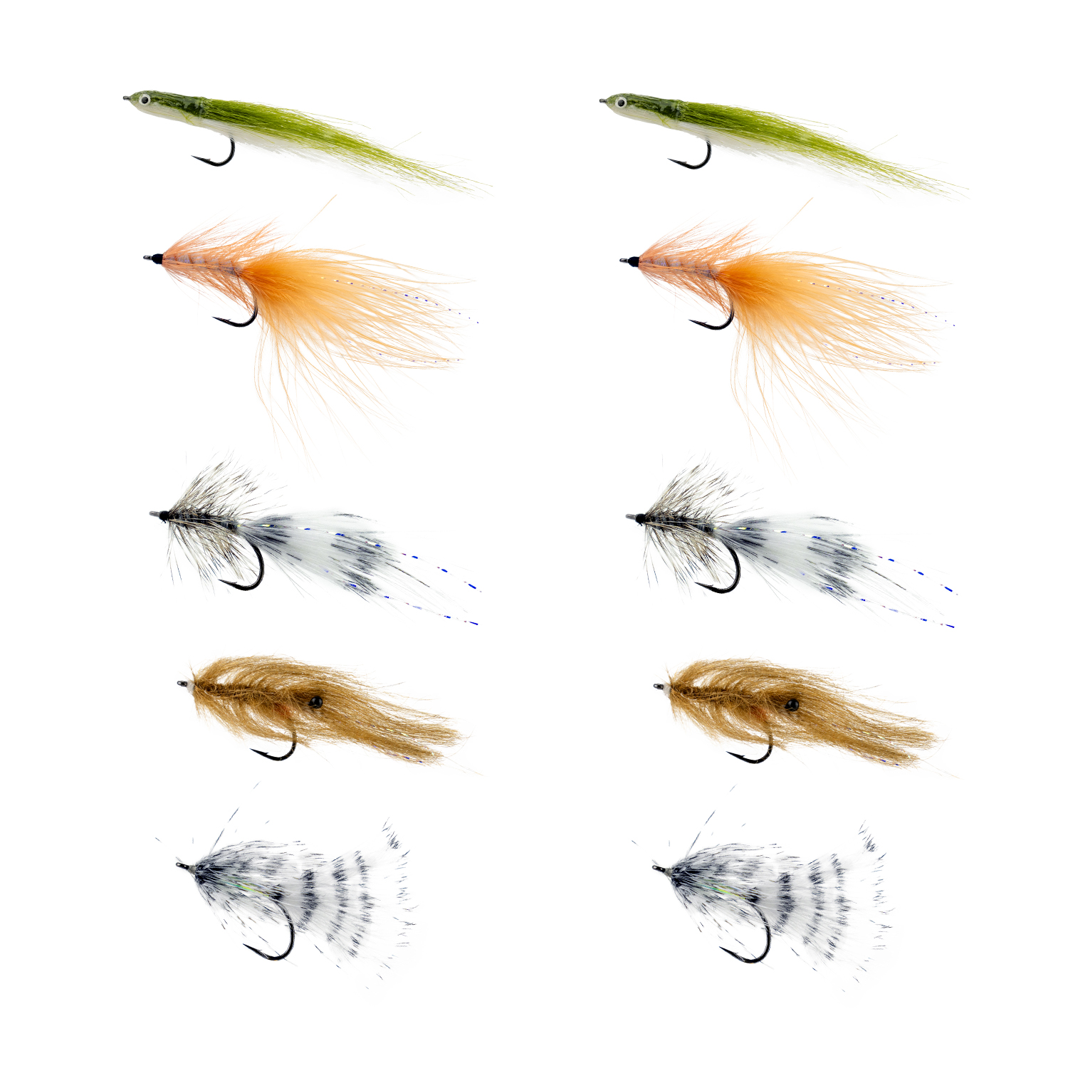 Kystfluepakke 1 indeholder 10 fluer, der er specielt udvalgt til fiskeri efter havørred langs den skandinaviske kyst. Med 5 forskellige mønstre (2 af hver) er dette sæt ideelt til forskellige fiskesituationer. Uanset vejrforholdene vil disse fluer hjælpe dig med at få succes på kysten.