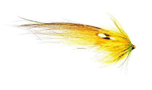 The Nasty Banana from Frödin BTT Nobody Series is a uniquely crafted tube fly by salmon fishing expert Mikael Frödin. Tied on Frödin's Brass Turbo Tubes, it maintains lightness while creating significant turbulence and movement in the water. Since it lacks a rear body, it can be fished with a separate rear body from the Frödin Bodie Series or with a loose hook.