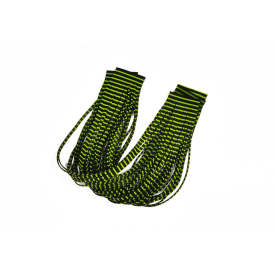 Et bredt udvalg med tæt stribede, kraftigt mønstrede og tre meget stærkt fluorescerende. Vi bruger "gummiben" på nogle af vores laksefluer, men endnu mere på havørred-, steelhead- og saltvandsfluer. Benene kan bindes på mange måder. Placeret direkte bag en Turbo-knude tilføjer de ekstra bevægelse og vibrationer til mange af vores mønstre. De kan effektivt bruges som ekstra haler, ben, rejeben og hvem ved hvad ellers. Som i al innovativ fluebinding er der tusind måder at gøre det på!