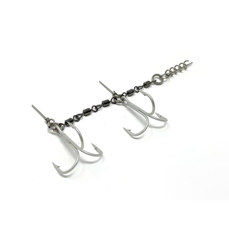 Komplet rig til dine gummilokker! Tilsluttede svirvler med ringe, kroge og lav skrue! Udstyret med to 2/0-kroge.