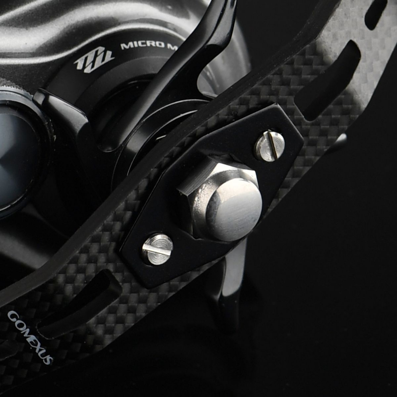 Dette baitcasting-håndtag har et unikt TORAY kulfiberdesign og en 105 mm håndtagshåndtagarm for øget komfort. 30 mm aluminium powerknap er meget følsom og holdbar, materialet forringes næsten ikke, så snavs og fiskelugt kan let fjernes.