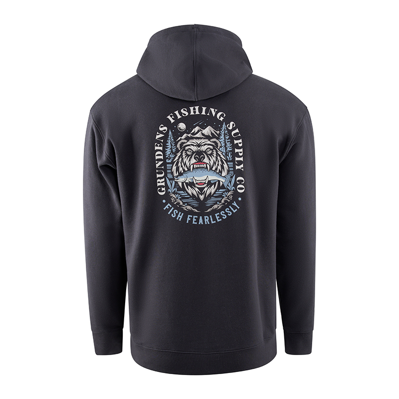 Bear Essentials Hoodie udtrykker naturens rene fiskeånd med en slående lystfiskergrafik, der giver komfort og en no-nonsense-stil.