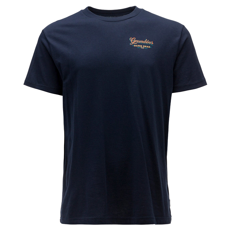Grundéns Dark Seas X Watercraft SS T-Shirt Dark Navy - Din t-shirt til hele dagen, hver dag, på båden, på stranden, i baren, der understøtter dit ønske om at sætte sejl mod horisonten, spundet med en dosis mørke fra vores kammerater hos Dark Seas.