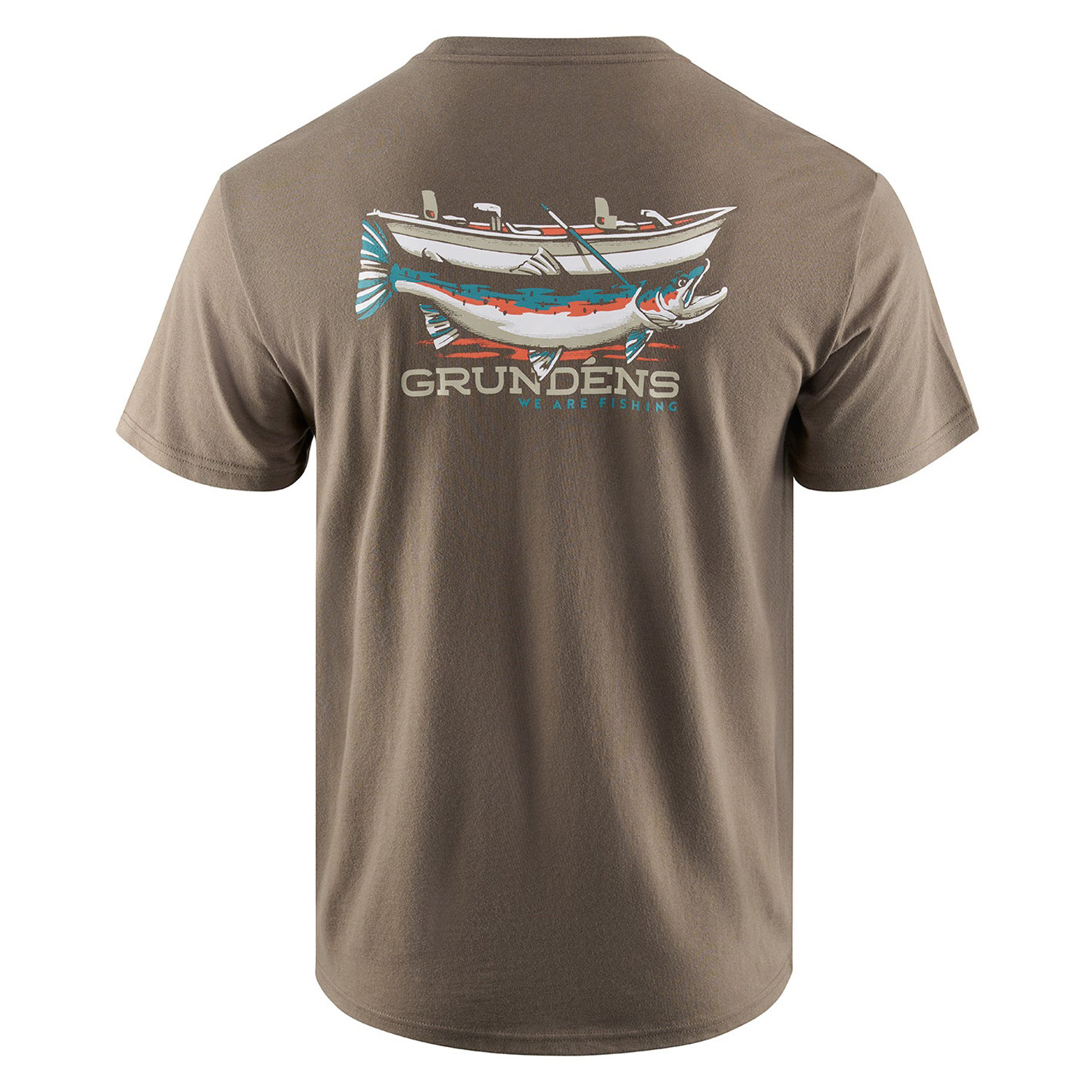 Grundéns Drift Boat SS T-Shirt fanger spændingen ved at drive ned ad floden på jagt efter en kæmpeørred – en drøm for enhver fluefisker.
