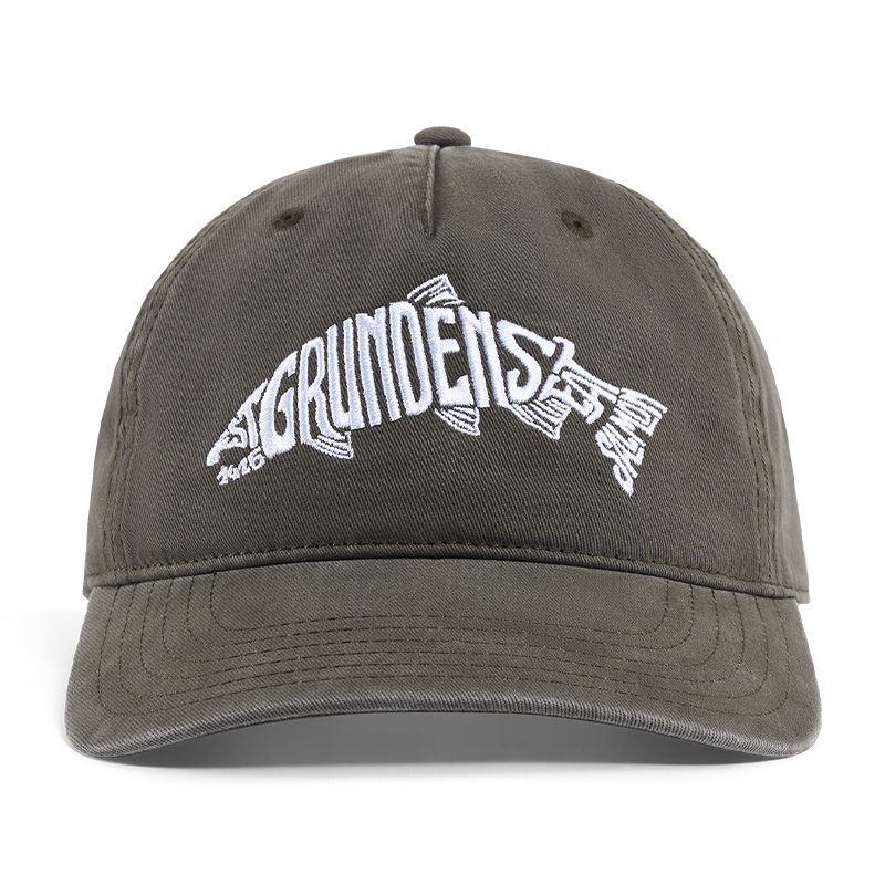 Rx Trucker – Eat Your Words Salmon er en casual kasket til lystfiskere, der lever for tiden på og ved vandet. Grundéns ikoniske "Eat Seafood, Wear Grundéns" slogan er integreret i en laksesilhuet, som hylder fiskeriet fra hug til serveringsklar fisk.