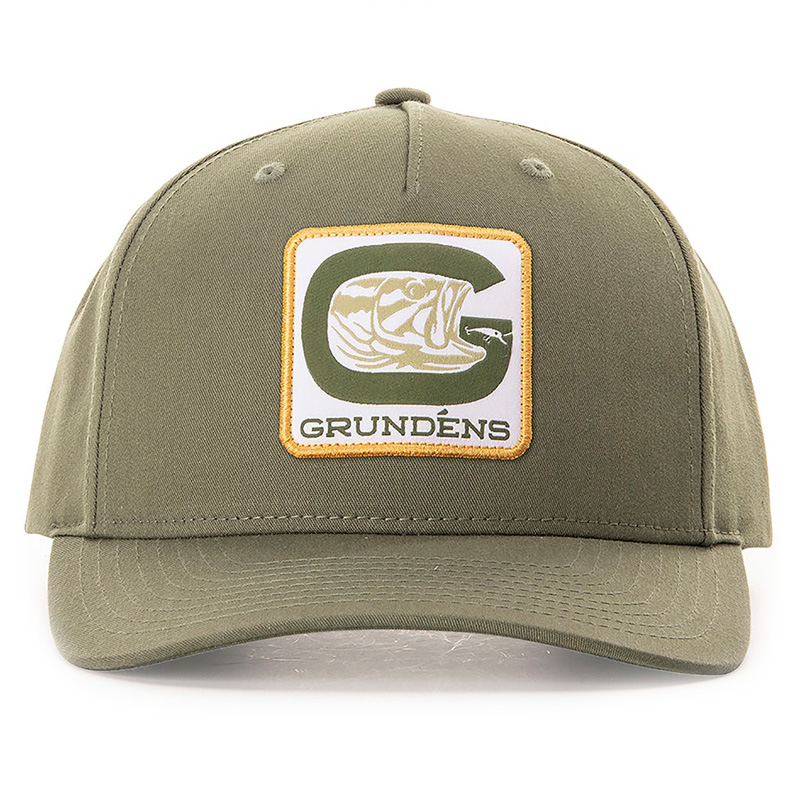 Grundéns G Bass Trucker Army er en klassisk trucker-kasket med en mid-crown pasform, justerbar snapback og et markant Grundéns G Bass-design.