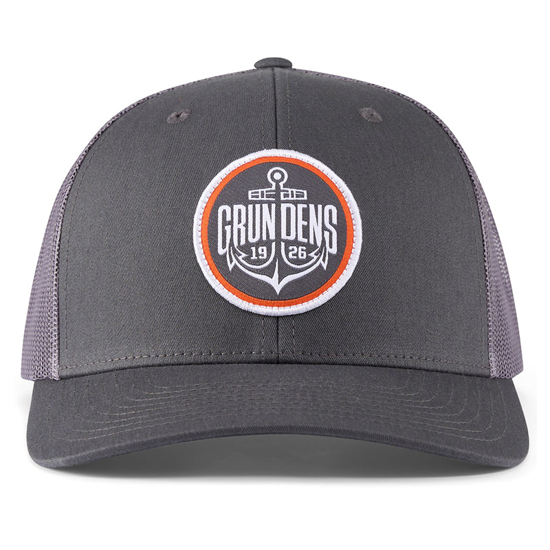 Grundéns Logo Anchor Trucker kombinerer klassisk maritimt design med holdbarhed og funktionalitet, komplet med Grundéns 1926 Logo Anchor-patch.