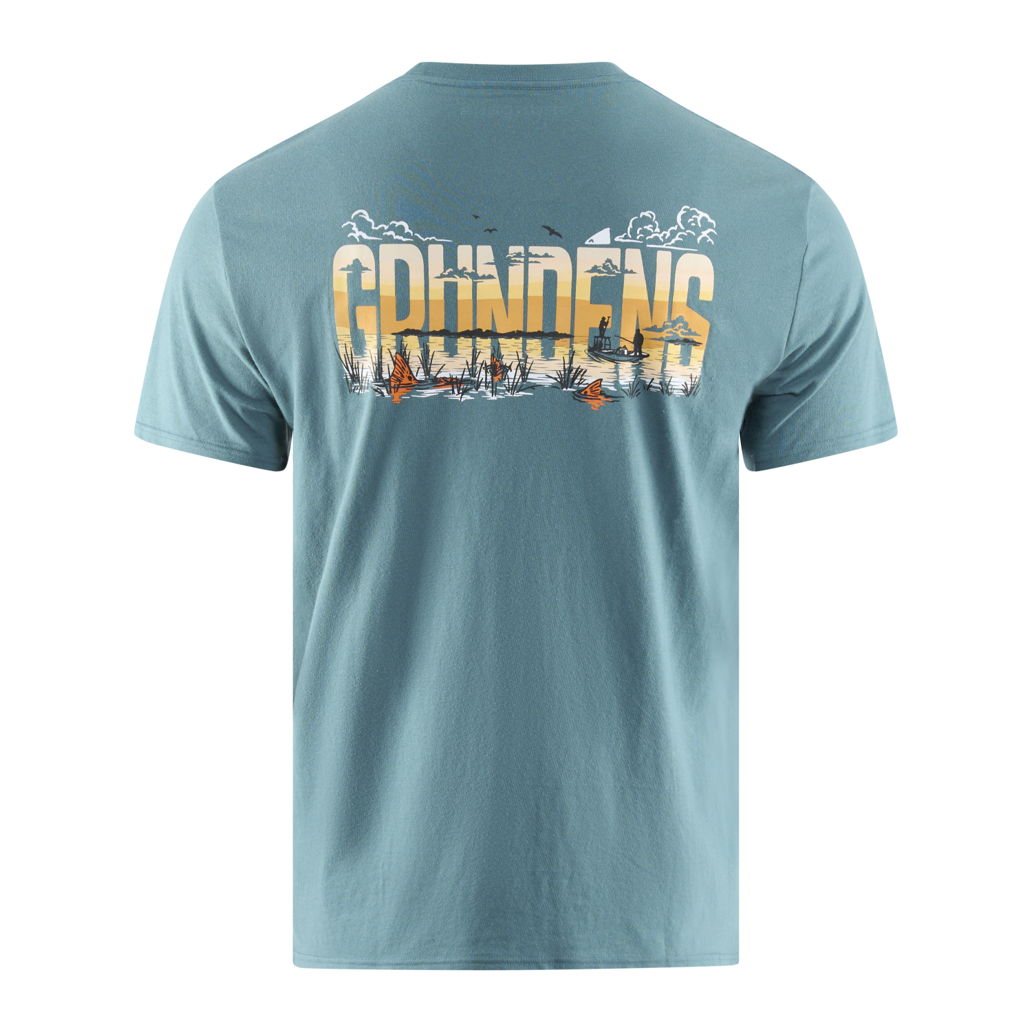 Redfish Flats Tee er en casual T-shirt til lystfiskere, der kan lide at have fiskeriet med sig i hverdagen. Motivet er inspireret af de klassiske redfish-flats med lavvandede mudderflader, græs og åben horisont.