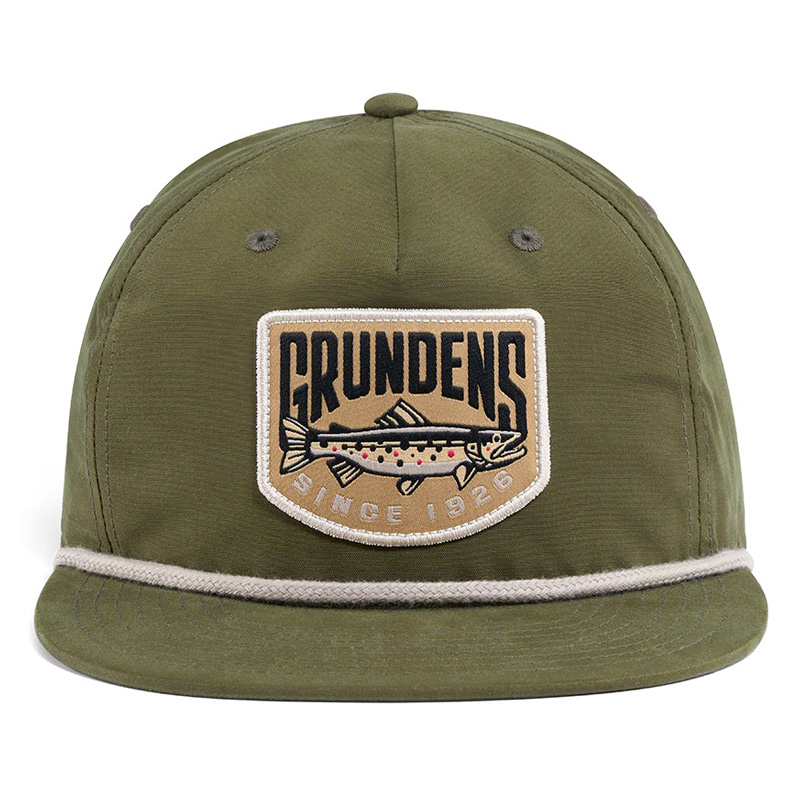 Grundéns Trout Patch Rope Trucker kombinerer retrostil med moderne detaljer som flad skygge, flip-up buckram og en stilfuld 5 mm snor.