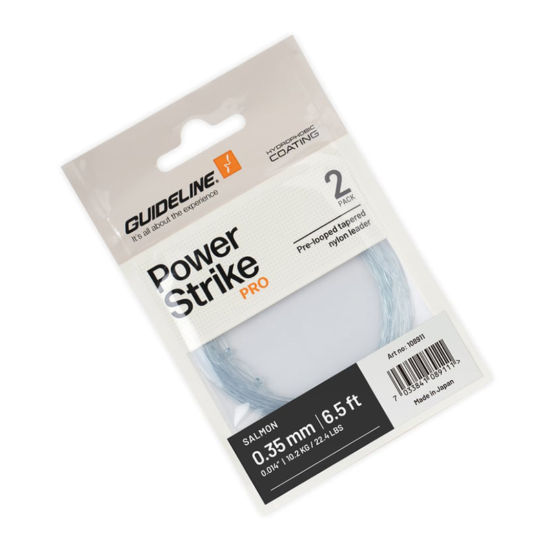 Guideline Salmon Leader 6'5'' er specialdesignet til laksefiskeri med synkeliner og synkespidser og sikrer effektiv energioverførsel med sin kompakte længde og aggressive taper. Den har en forudindbundet løkke og en diskret røggrå nuance, der smelter sømløst sammen i vandet. Den optimerede taper-profil - 25 % butt, 38 % taper og 38 % tip - giver en jævn energioverførsel. Butt-diameteren på 0,65 mm passer perfekt til moderne skydehoveder og speyliner, og muligheden for at montere en kort forfangsspids giver fleksibilitet til at forlænge forfanget med lettere synkeliner eller delikate præsentationer. Dette forfang er fremstillet af japansk nylon af høj kvalitet og forbedret med Hydrophobic Coating (HPC) for at reducere vandabsorptionen, forbedre holdbarheden og bevare fleksibiliteten, og det er en pålidelig tilføjelse til dit laksefiskeudstyr.