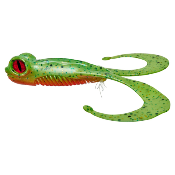 Mama Bull Frog er et stort målkøbsagn, der kan svømme i enhver hastighed. Vi har øget tykkelsen ved bunden af benene for at forstærke vibrationer og glideeffekten af agnet, når det falder. Prøv lange pauser under indhentning for at lade agnet falde lokkende foran eventuelle efterfølgende store fisk. Den dobbelte grub-hale og den store krop flytter masser af vand og arbejder sammen med de pulserende ben for at skabe en bemærkelsesværdig forførende handling i vandet. Mama Bull Frog forskyder meget vand, skiller sig tydeligt ud og sender en klar besked til rovdyr om, at det er værd at undersøge! Disse detaljer hjælper med at tiltrække speciminfisk til dit agn og få flere positive hug. Anis smag.