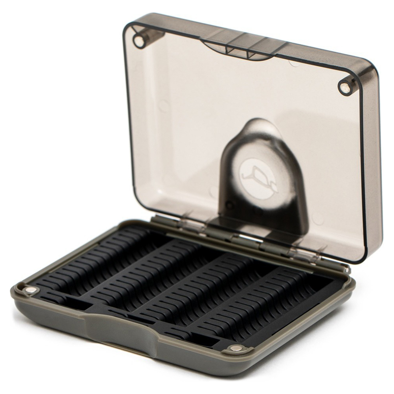 Den slidsede silikoneindsats holder hver enkelt krog sikkert på plads uden at beskadige spidsen. Boksen er lavet af slagfast plast og har en magnetlukning, der forhindrer den i at åbne under transport. Låget har en indbygget, opklappelig forstørrelseslinse, som gør det nemt at inspicere krogspidserne. Perfekt til fiskere, der bruger rigs, hvor håret bindes separat, såsom spinner rigs.