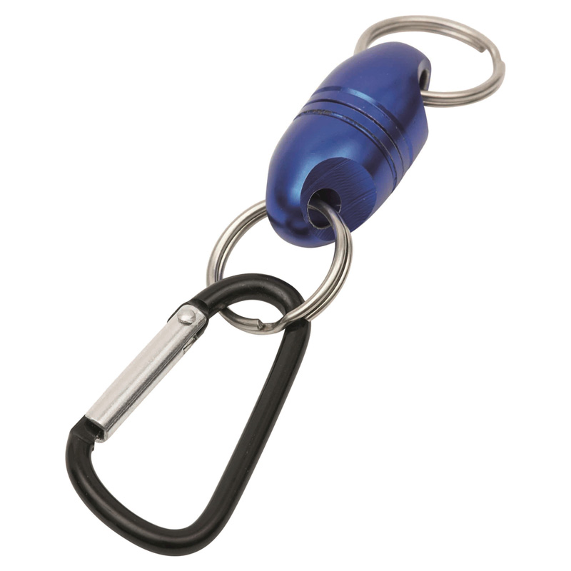 Kinetic Magnetic Release inkluderer superstærke magneter for at sikre sikkerheden i et opbevaret net, selv når du tramper gennem tæt børste. Sikkerhedskrog og splitringe til fastgørelse til rygsæk eller vest. Kan også bruges sammen med kuttere, tænger og andre fiskeredskaber.