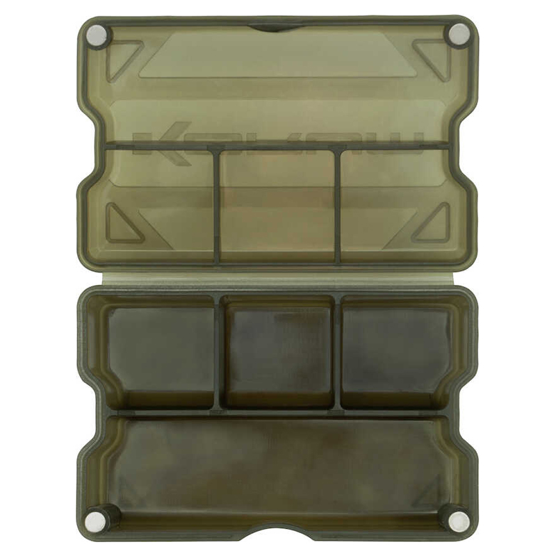 Korum Bits Blox 5 Slot er en lille lokkedåse med 5 forskellige slots. En boks, hvor du kan opbevare dine små gadgets som kroge, lodder og svirvler!