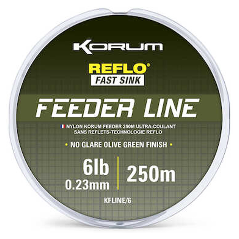 Korum Feeder Line er en grøn, hurtigt synkende nylonline med en anti-reflekterende belægning. En line specielt designet til fiskeri med foderautomater!