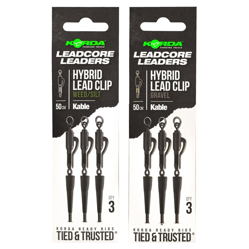 Hver leader er lavet af vores ekstremt slidstærke og hurtigt synkende Kable Leadcore, med en Hybrid Lead Clip i den ene ende og en splittet løkke i den anden, så den let kan fastgøres til hovedlinen.