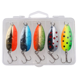 Lill-Sluken er en fantastisk lille agn i messing til ørred, fjeldørred, regnbueørred og aborre. Her i en mixpakke med 5 forskellige farver i en agnboks.