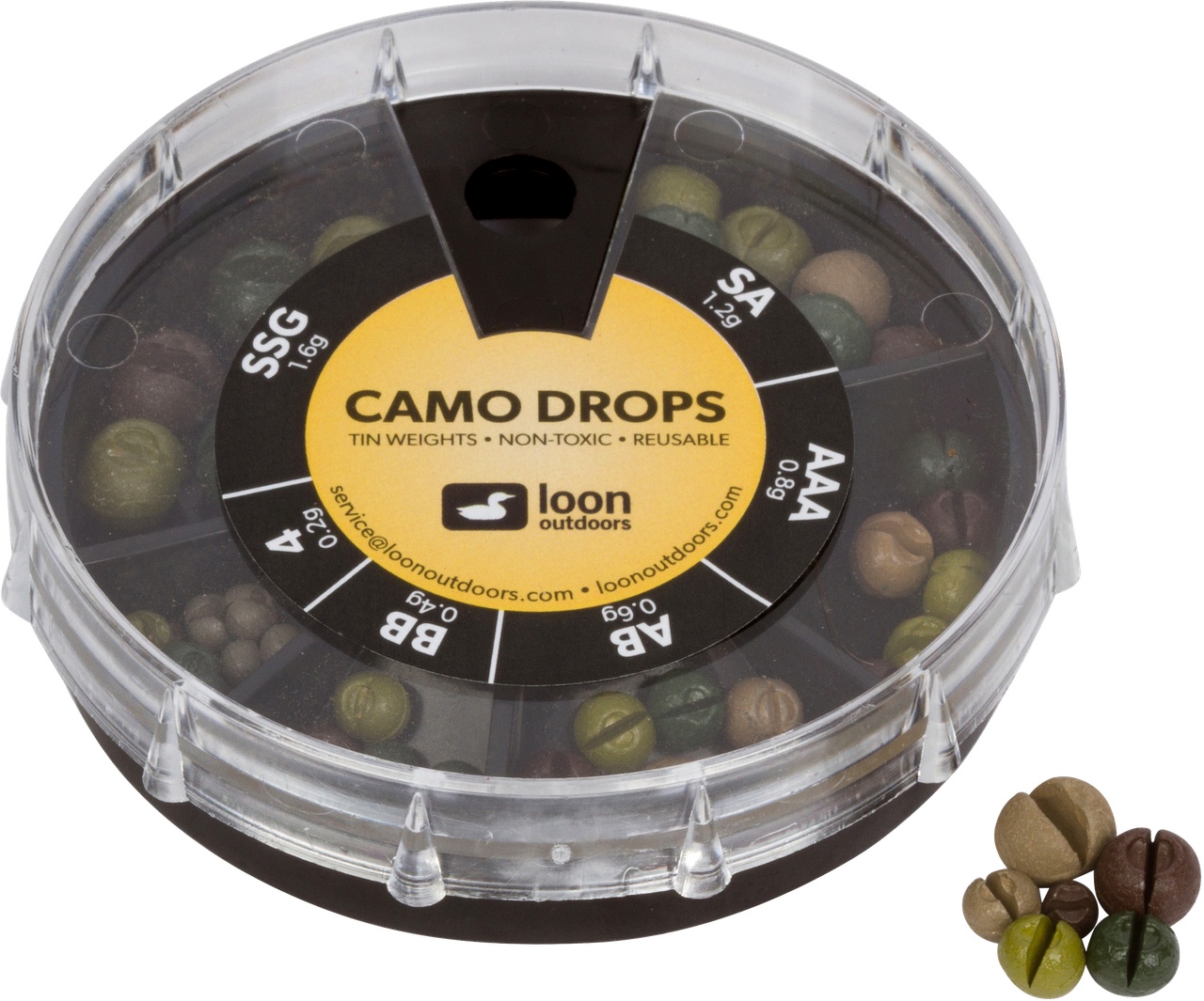 Disse blyfri vægte fås i camo eller sort og har en slidstærk, mat finish, der forhindrer dem i at glide på linen. De naturlige farver gør dem diskrete for fiskene, og det dobbeltskårne design gør dem lette at justere og genbruge.