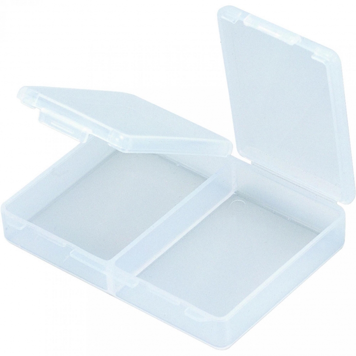 Lille æske fra Meiho med separate rum. Meiho Rectangle FB-2 mini rum-etui er en klar plastikbeholder, der har 2 små opbevaringsrum med individuelle påsatte hængslede låg.