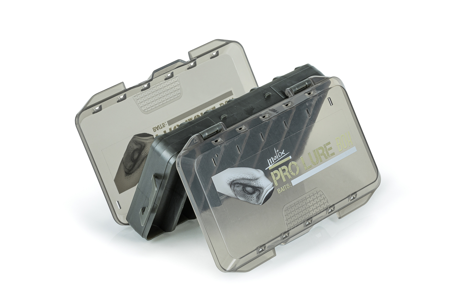 Molix Pro Lure Box Small - 17,6x18,5x3,7cm - Serie af lokkekasser i polypropylen med åbning på begge sider og rum til individuel opbevaring af agn. Hullerne i hvert enkelt rum gør det muligt at vaske agnen efter brug uden at tage den ud af kassen og giver den nødvendige ventilation til at tørre fugt. Fås i to forskellige størrelser.