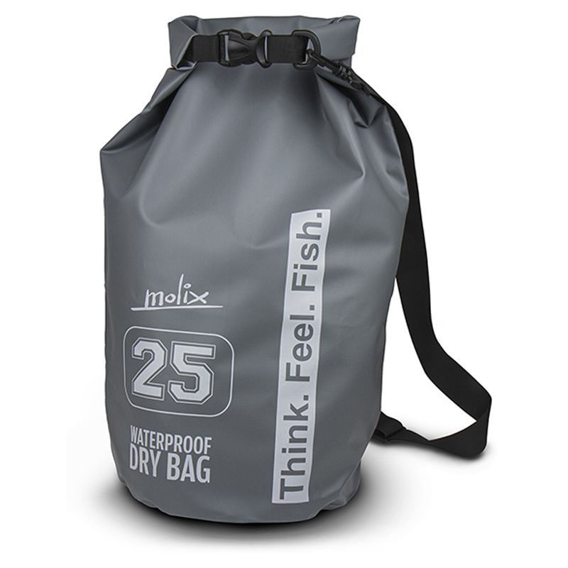 Molix Waterproof Dry Bag 25 LT Grey er en vandtæt og forstærket tørtaske med skulderrem. Opbevar dit tøj tørt og sikkert i en vandtæt taske!