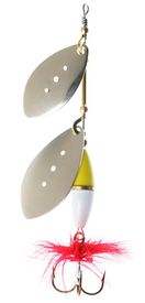 Wipp er en spinner ud over det sædvanlige med enorme fangstegenskaber. Skeen har et design, der understøtter kroppen perfekt. Kroppen er tofarvet og fordi den runde remskive er lidt større end kroppen, hviler skeen på remskiven i neutral position. Dermed påvirker vandets vedhæftning ikke, men skeen starter med det samme. Wipp er udstyret med en ultra skarp krog og har Myrans egen attraktive lydkonstruktion. Wipp Double er en overfladespinder. Tilgængelig i: 9 og 12 gram. Ske farver: Sølv-Guld-Koppler -Sort.