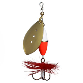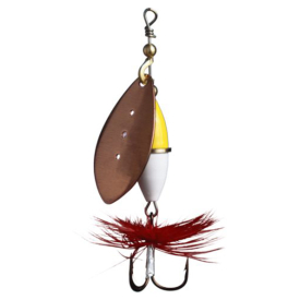 Skeen har et design, der understøtter kroppen perfekt. Kroppen er tofarvet og fordi den runde remskive er lidt større end kroppen, hviler skeen på remskiven i neutral position. Vandets vedhæftning påvirker således ikke, men skeen starter med det samme. Wipp er udstyret med en super skarp krog og har Myrans egen attraktive lydkonstruktion. Tilgængelig i: 3-5-7-10-15- g. Ske farve: Sølv - Guld - Kobber - Sort.