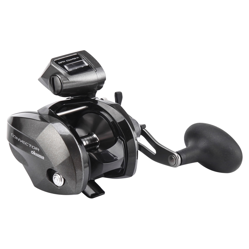 Lavprofil line-counter trollinghjul med smart Quick Drop Switch-funktion. Når du tænder, skal du trykke på tommelfingerstangen for at frigøre spolen. Lad tryk på tommelfingerstangen, og spolen sættes i indgreb igen. Simpelthen genialt.