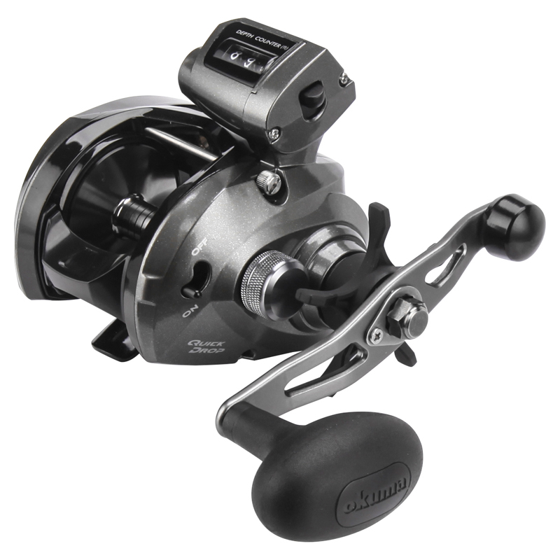 Lavprofil line-counter trollinghjul med smart Quick Drop Switch-funktion. Når du tænder, skal du trykke på tommelfingerstangen for at frigøre spolen. Lad tryk på tommelfingerstangen, og spolen sættes i indgreb igen. Simpelthen genialt.