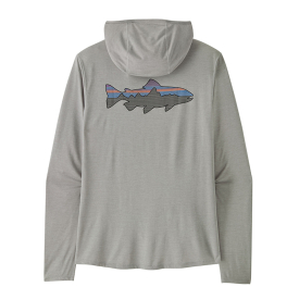 Solbeskyttende hoody med Fitz Roy Trout-grafik – 40+ UPF, hurtigtørrende og lavet af genbrugsmaterialer.
