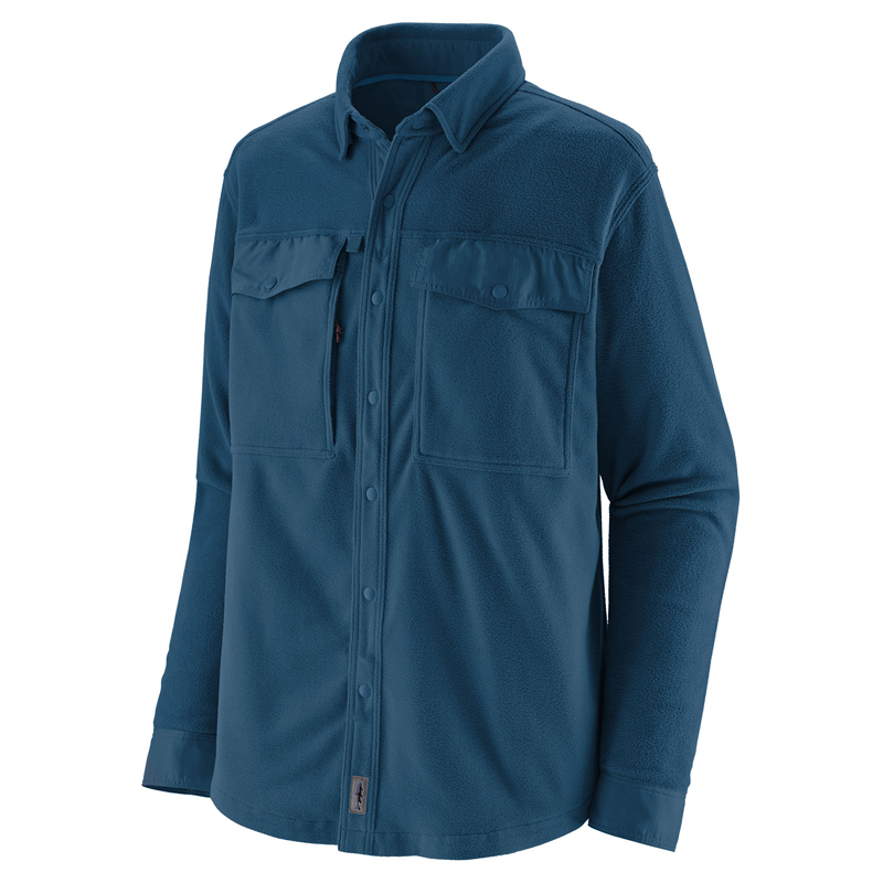 Patagonia Early Rise Snap Shirt er en teknisk skjorte designet specielt til fluefiskere. Den er fremstillet af blød, hurtigttørrende Micro D™ mikrofleece af 100% genanvendt polyester, som giver varme og komfort. Krave, lommer og manchetter er forstærket med slidstærkt nylon taslan for ekstra holdbarhed. Skjorten har to store brystlommer til flueæsker, og den højre lomme har en lodret lynlåslomme for ekstra opbevaring. Der er også en lille løkke til fastgørelse af tilbehør. Perfekt som yderlag i tørt vejr eller som mellemlag under waders.