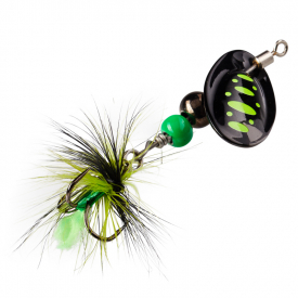 Alle DOTS spinnere er udstyret med en rullende svirvel for at reducere snoningen af linen. Krogene er fastgjort med en splitring, så du kan tilpasse hver enkelt agn, hvis det er nødvendigt.