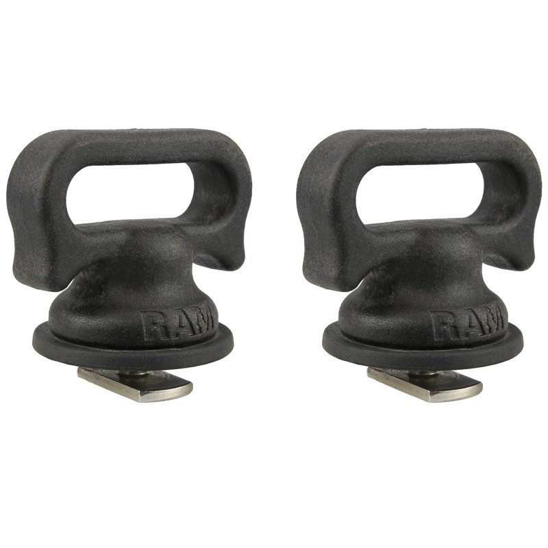 Som en pakke med to, RAM® Vertical Track Tie Down-system har en T-bolt og giver et ankerpunkt til brug med et skinnemonteringssystem, så du kan fastgøre kølere og andet tilbehør til din kajak.
