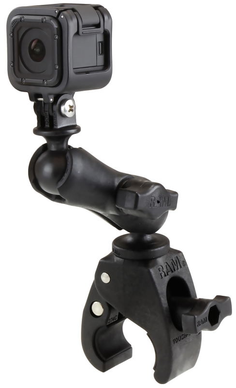 RAM Tough-Claw™ er den perfekte monteringsbase til hurtig og nem installation og fjernelse uden værktøj på runde, firkantede, ulige formede skinner og stænger. The Tough-Claw™ kan fastspændes på skinner fra 0,625" - 1,5" ydre diameter. GoPro®/Action Camera-adapteren fastgøres direkte til undersiden af kameraet og erstatter fabriksmonteringsbeslaget.