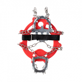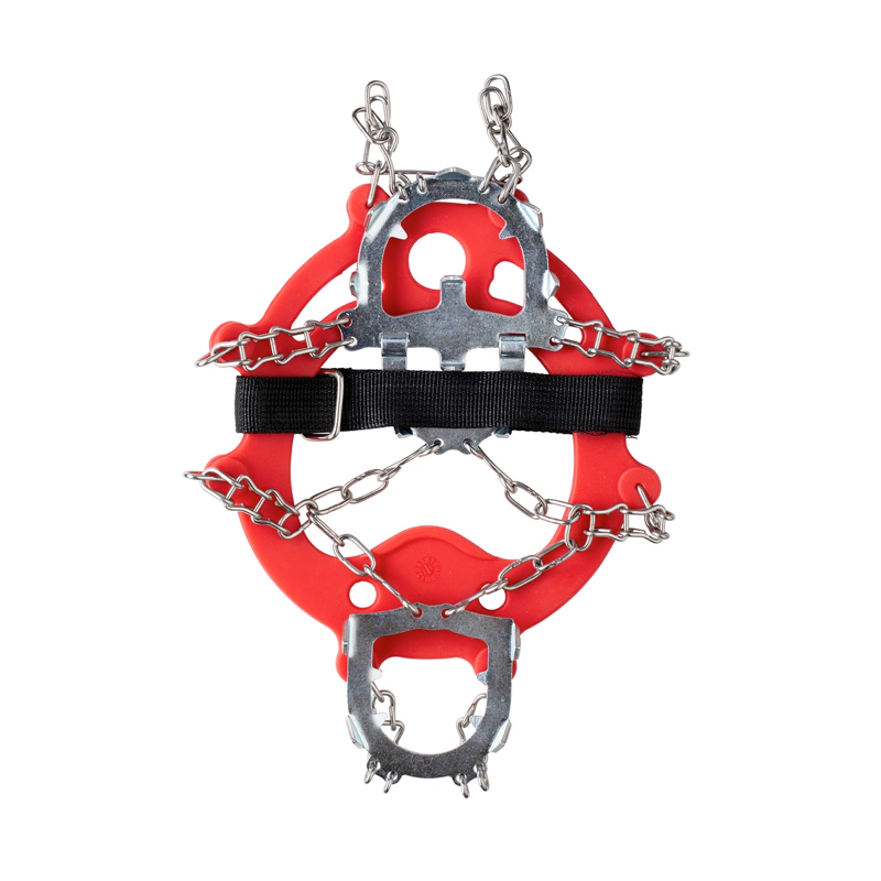 Kæden og piggene er lavet af rustfrit stål. Slidstærkt gummi. Velcrolukning over foden for optimal pasform omkring skoen. Nem at tage af og på. Opbevaring medfølger.