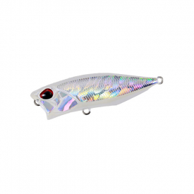Så enkle som nogle poppers er, besluttede DUO sig for et mere indviklet design. R&D-personale brugte utallige timer på at perfektionere lokkets action og statiske tonehøjde. Mange turneringspoppere ligger næsten fladt eller sidder i en vinkel på ca. 30 til 40 grader, hvilket frigør krogene og forlænger profilen. DUO gik den anden vej. Popper 64 hviler næsten lodret, hvilket giver den en mere strømlinet silhuet, og der er intet tab af tilslutningsforhold. Bølgevirkning hæmmer ikke dens tur eller position, og mere af kroppen er nedsænket, hvilket eksponerer mere lokke til fisken.