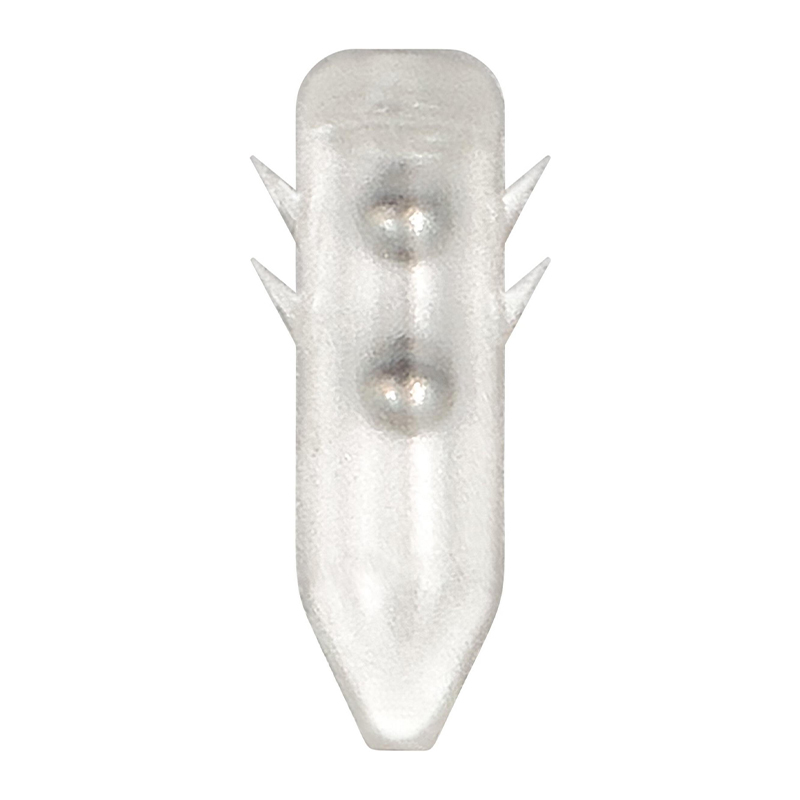 Den spidse form med små modhager gør dem nemme at få til at sidde fast – både i dedikerede rattle-slots og direkte i kroppen på soft plastics. Polycarbonat-konstruktionen er robust og tåler hårde kast, bid og kontakt med bunden. Fire størrelser (S, M, L, XL) gør det let at matche alt fra mindre aborre-agn til store gedde- og sandart-softbaits.