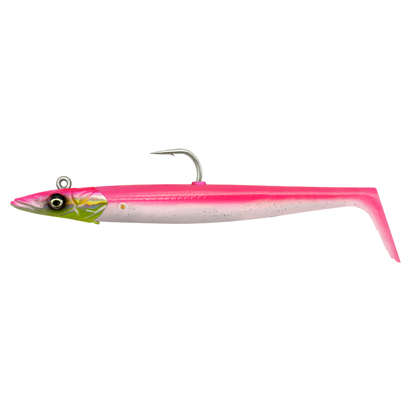 Med en livlig sparkeaktion på både drop og apport vil denne superrealistiske tobisimitation narre selv den mest varsomme rovfisk. Det unikke jighoved hjælper med at sikre, at lokken bevæger sig med en perfekt rullende og pilende handling. Pro Peg kropsholderen gør det muligt at fastgøre kroppen til hovedet med en tandstikker, hvilket skaber et meget enkelt og sikkert hold. Det bløde PVC-hus er formonteret med en indvendig glasrangle, der afgiver en provokerende lyd til enhver jagtfisk i nærheden.