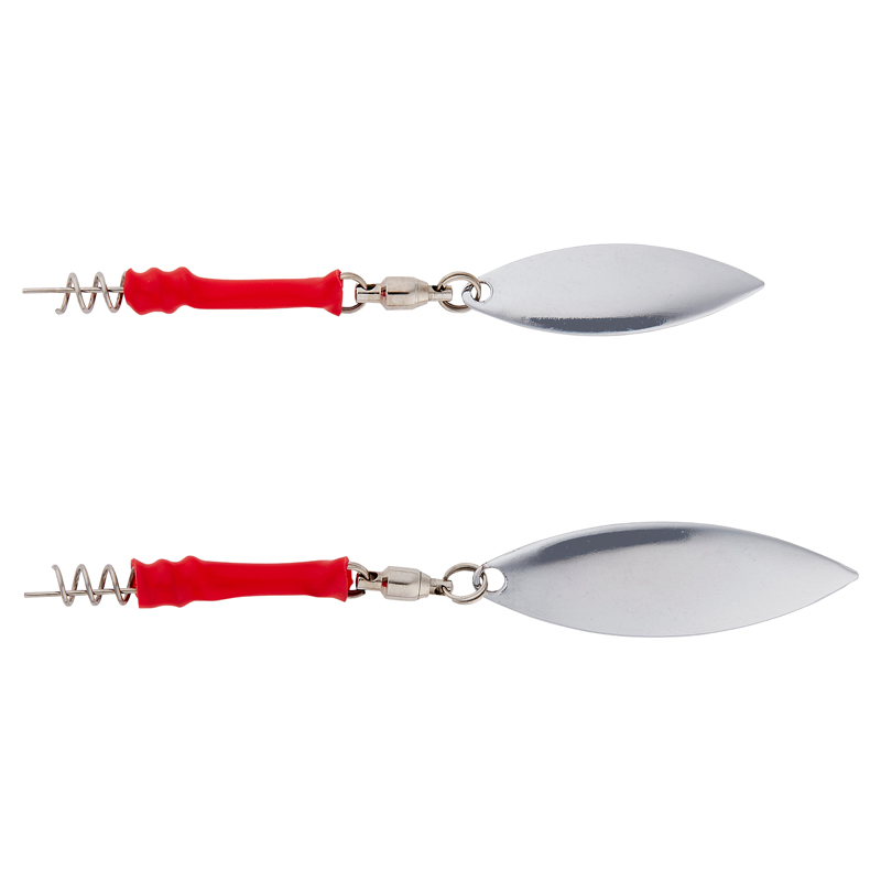 Savage Gear Screwin Spin Teaser. Tunna silverpläterade stålblad, lekande med kullager, korkskruv i rostfritt stål, delvist stel med fluorött krymprör.