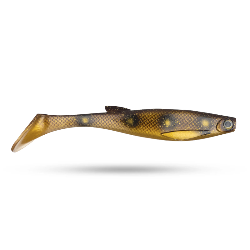 En shad softbait i en boxform, der flytter meget vand takket være dens overdimensionerede pagaj. Som for alle vores egne skræddersyede bløde lokker, så er disse lokker fri for phthalat!